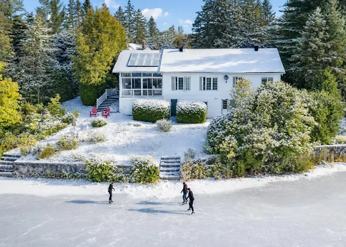 S výhledem na jezero je Water Front Golden Lake Cottage - Calm And Peaceful 25 minut chůze od Village du Père Noël ve městě Val-David.
